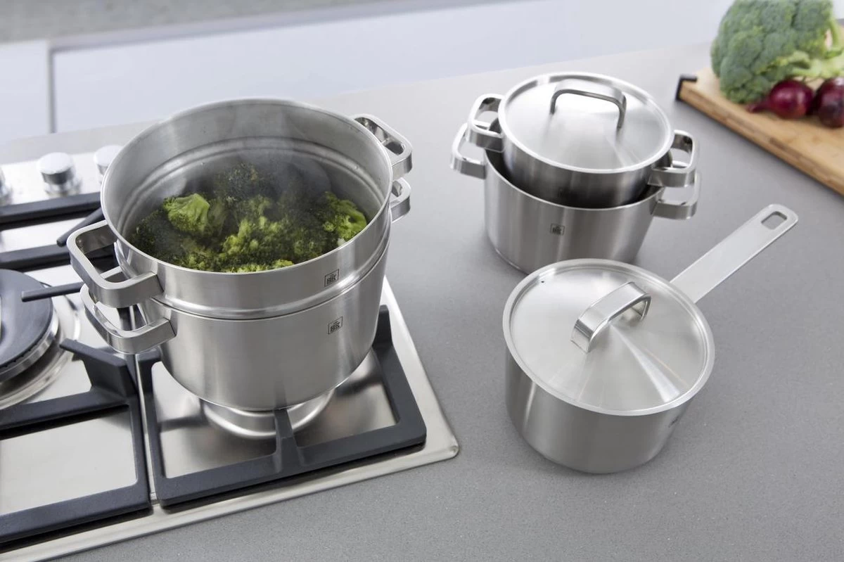 Stomen is de gezonde kooktechniek van het moment. Hierbij blijven alle belangrijke voedingsstoffen van ingrediënten bewaard. Dit zorgt voor gezonde gerechten. De BK Conical+ stoomkokers passen bovendien perfect in elkaar en ook in alle BK Conical+ kookpannen met een diameter van 20 centimeter. Door de stomer in deze BK Conical+ kookpan te plaatsen, is alles zeer makkelijk te stomen.