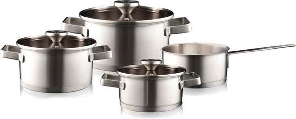 Deze 4-delige RVS pannenserie van Herman den Blijker bestaat uit:
