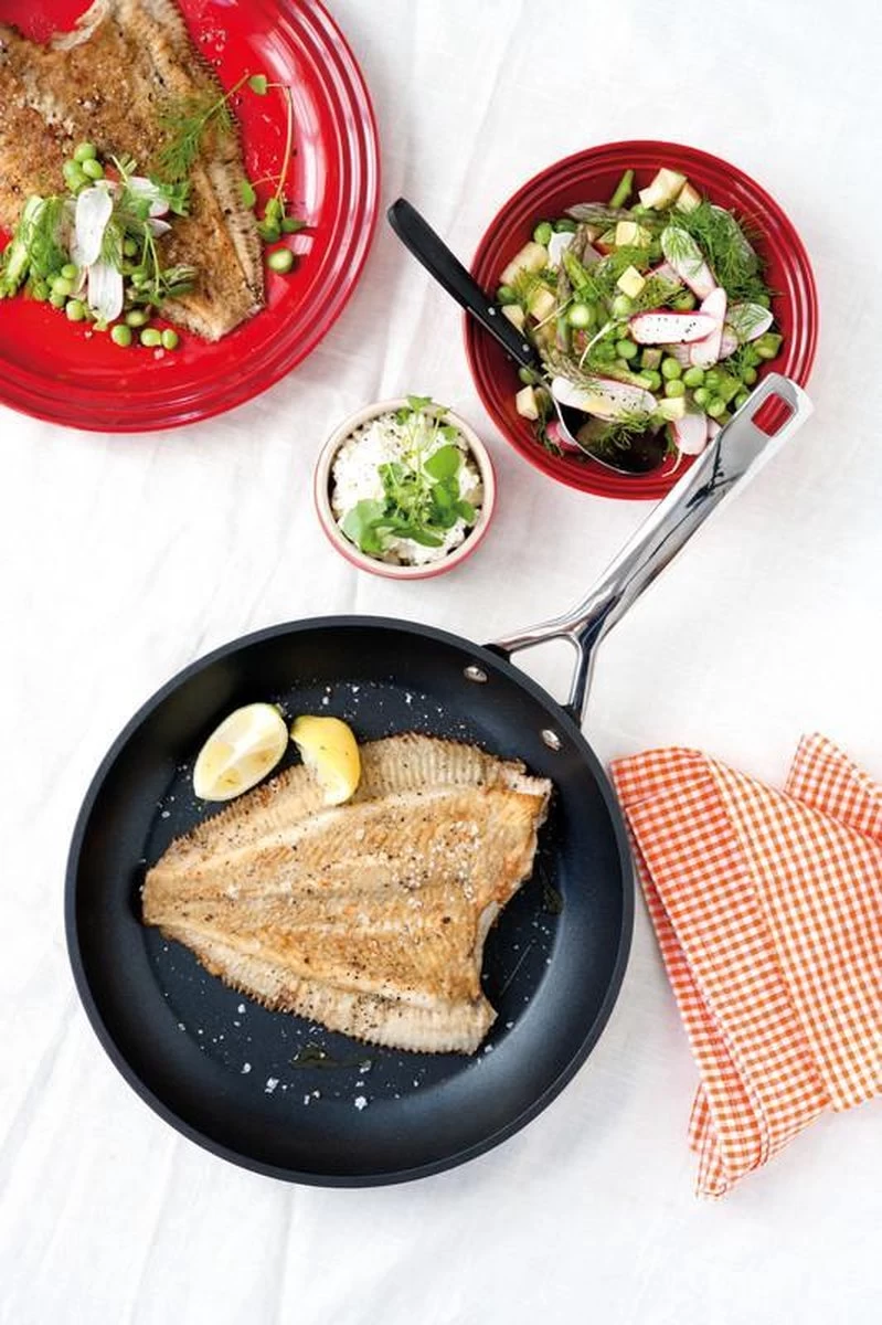Le Creuset Koekenpan Les Forgées TNS Ø 24 cmDeze Le Creuset Koekenpan Les Forgées TNS met een diameter van 24 centimeter is perfect voor dagelijks gebruik. Deze koekenpan is geschikt om producten met eiwitten en zetmeel te bakken, zoals ei, aardappels en vlees. Voor een lekker biefstukje raden we je aan om die in een gietijzeren pan te bakken, omdat die pannen heter worden dan de Les Forgées pannen. Aan de binnenkant is deze koekenpan voorzien van de beste antiaanbaklaag ooit. Deze antiaanbaklaag kan alle vormen van bakken aan, zelfs zonder vet of olie. De geharde laag laat voedsel eenvoudig los, waardoor de pan gemakkelijk schoon te maken is.