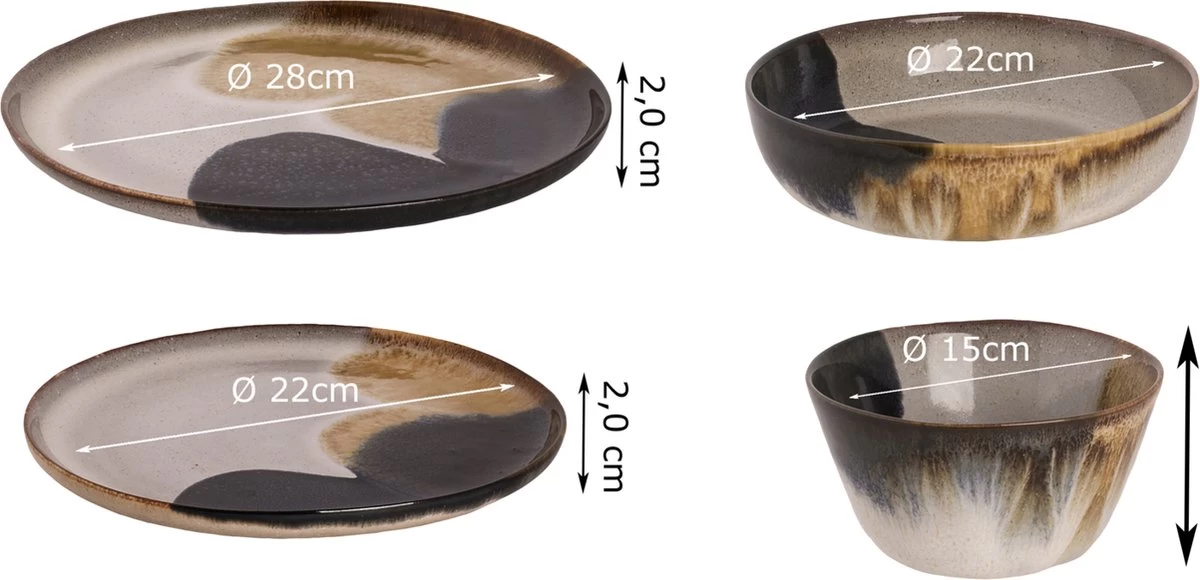 · Product: 6 dinerborden, 6 ontbijtborden, 6 diepe (pasta)borden, 6 kommen