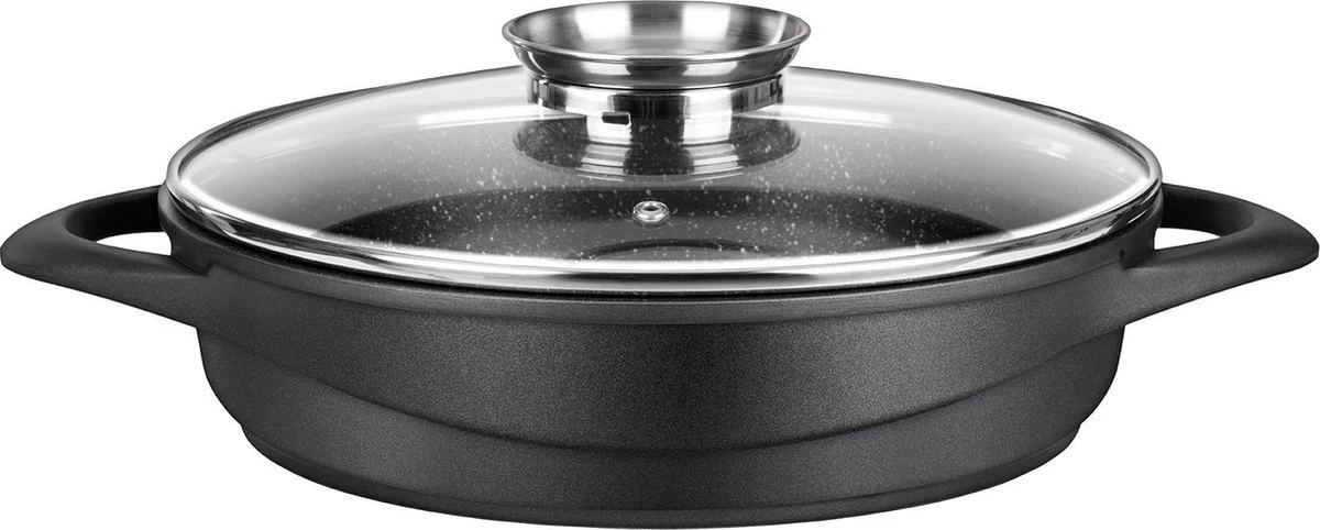 - Kookpan + glazen deksel: ⌀28 cm x 7 cm – 3,5 L