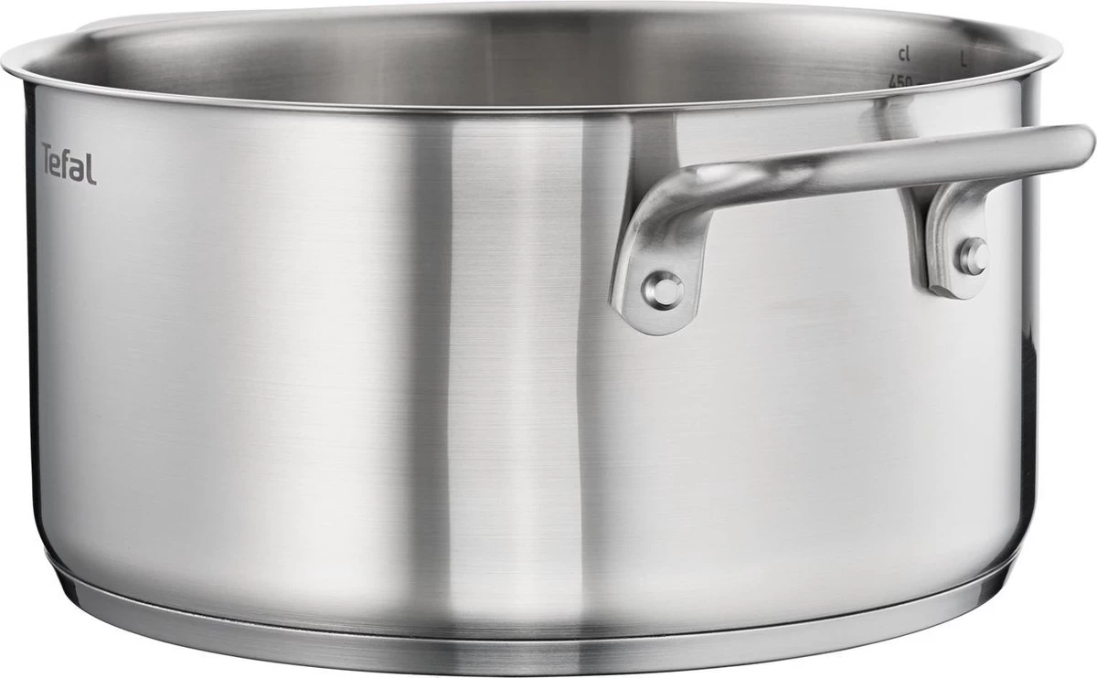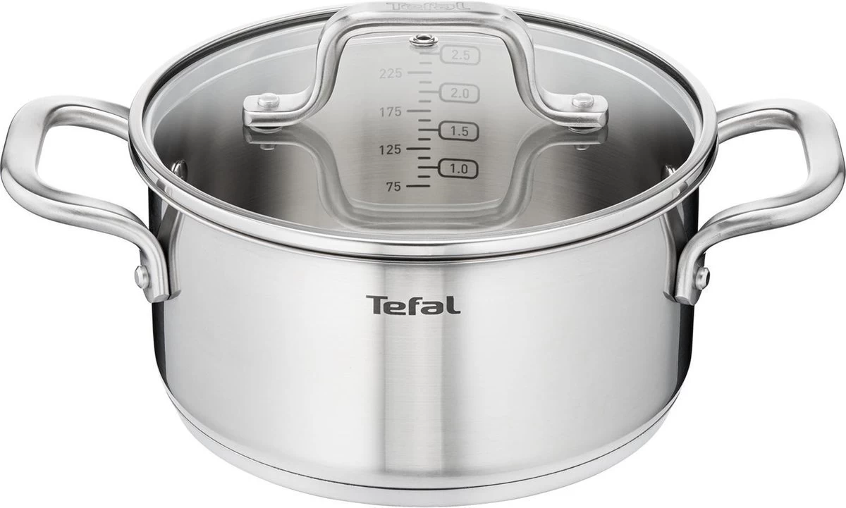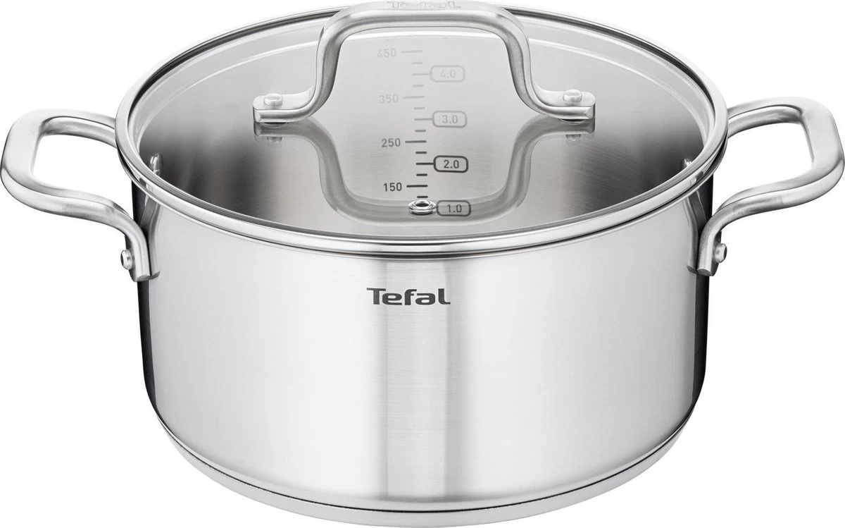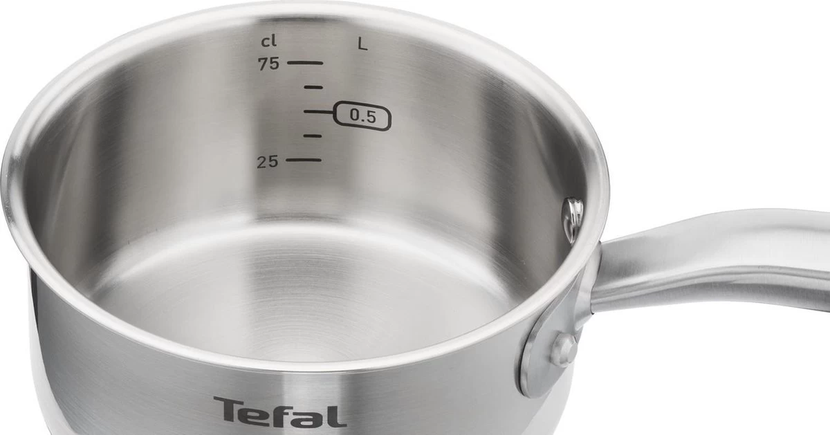 Met de Tefal Virtuoso Pannenset 4-delig – Kookpan Ø 16/20/24 cm + steelpan Ø 16 cm haal je een goede basis in huis voor veel gerechten. De pan is er geschikt om aardappels, pasta en groenten koken. Dankzij het hoogwaardige 18/10 roestvrij staal en het robuuste design gaan de pannen ook zeer lang mee. Dat is ook precies de reden waarom deze pan met 10 jaar garantie wordt geleverd. Stevige, geklonken roestvrijstalen handvatten zorgen voor een heel nieuw niveau van stabiliteit onder het koken, zodat je vol vertrouwen in de keuken kan staan. De glazen deksel en duidelijk zichtbare maatverdeling maken deze kookpan makkelijk in gebruik.