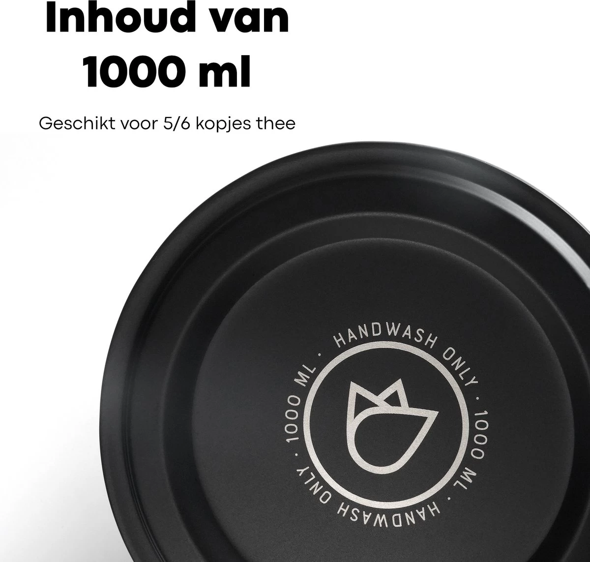Vatten® – Premium RVS Theepot – Incl. RVS Theefilter – 1L – Zwart – Dubbelwandig